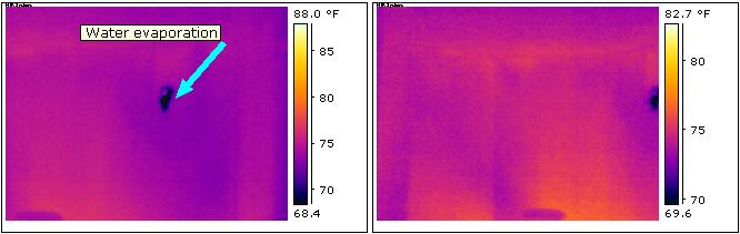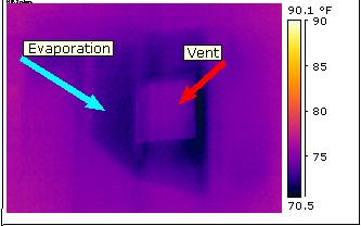 Before any repairs were made, a vent was installed between the studs in the basement. This allowed the moisture to cool and made the thermal anomaly stand out.